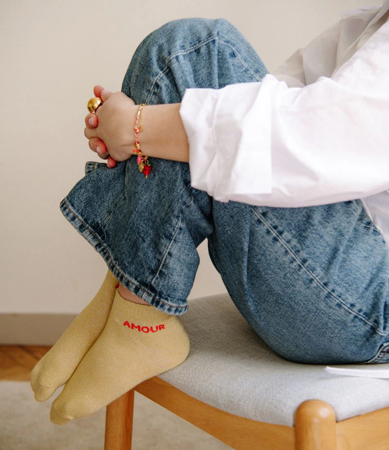 Chaussettes basses à paillettes brodées d’un joli message et d’un cœur à l’arrière❤️ Choisissez votre coloris favori !