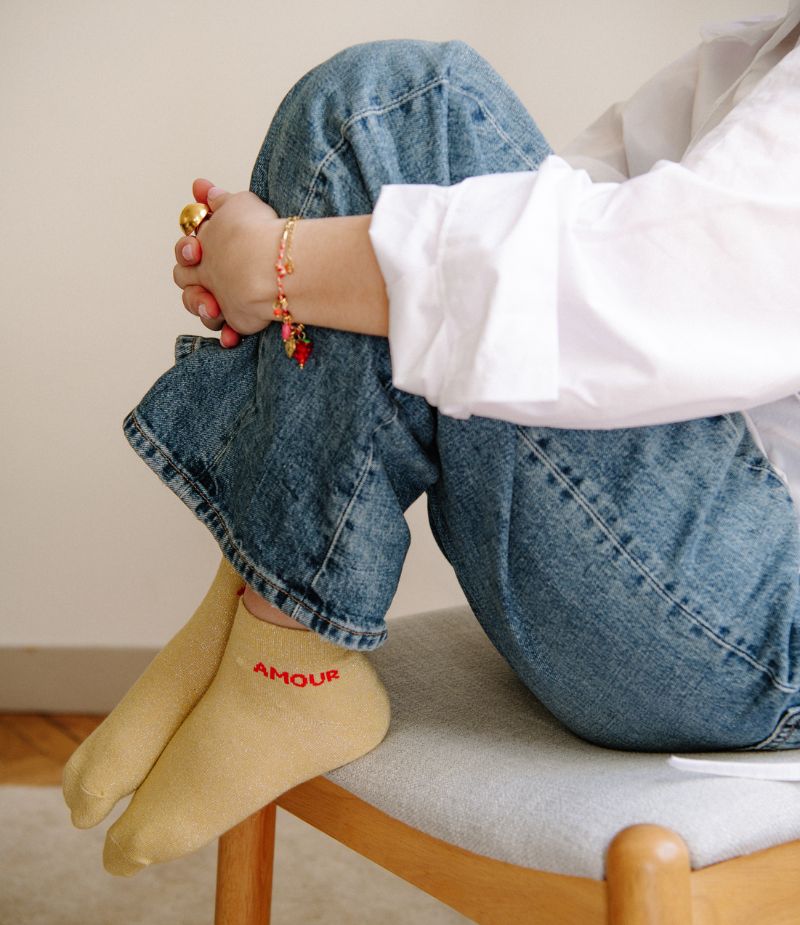 Chaussettes basses à paillettes brodées d’un joli message et d’un cœur à l’arrière❤️ Choisissez votre coloris favori !