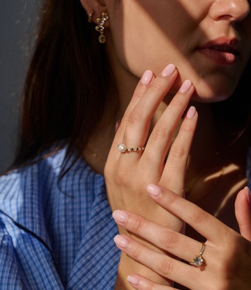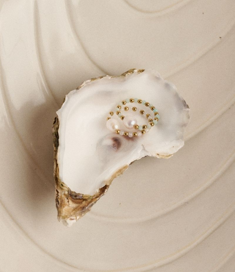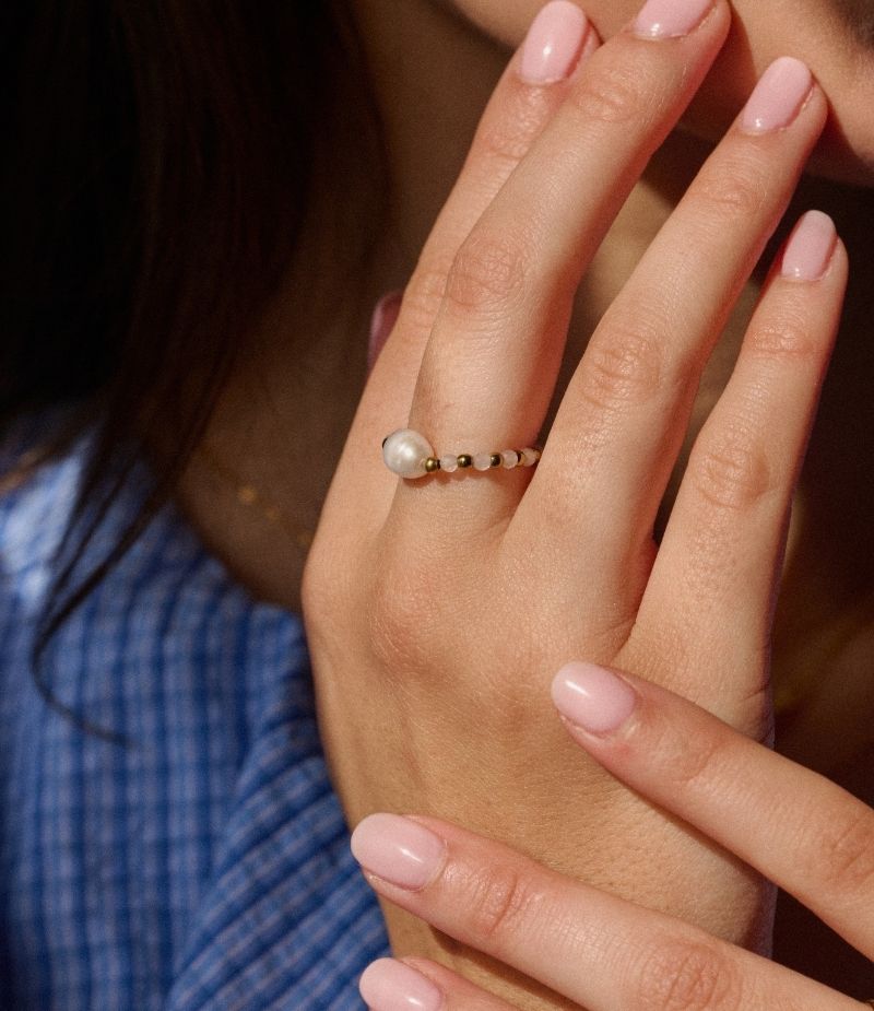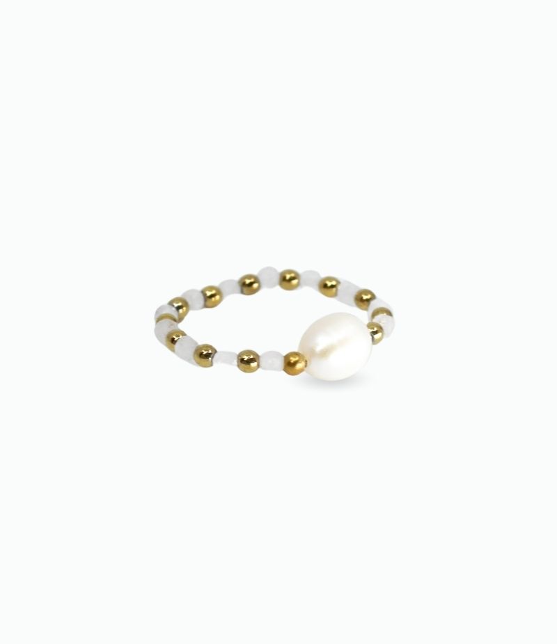 Bague élastique à perles aux détails en acier inoxydable 🤍