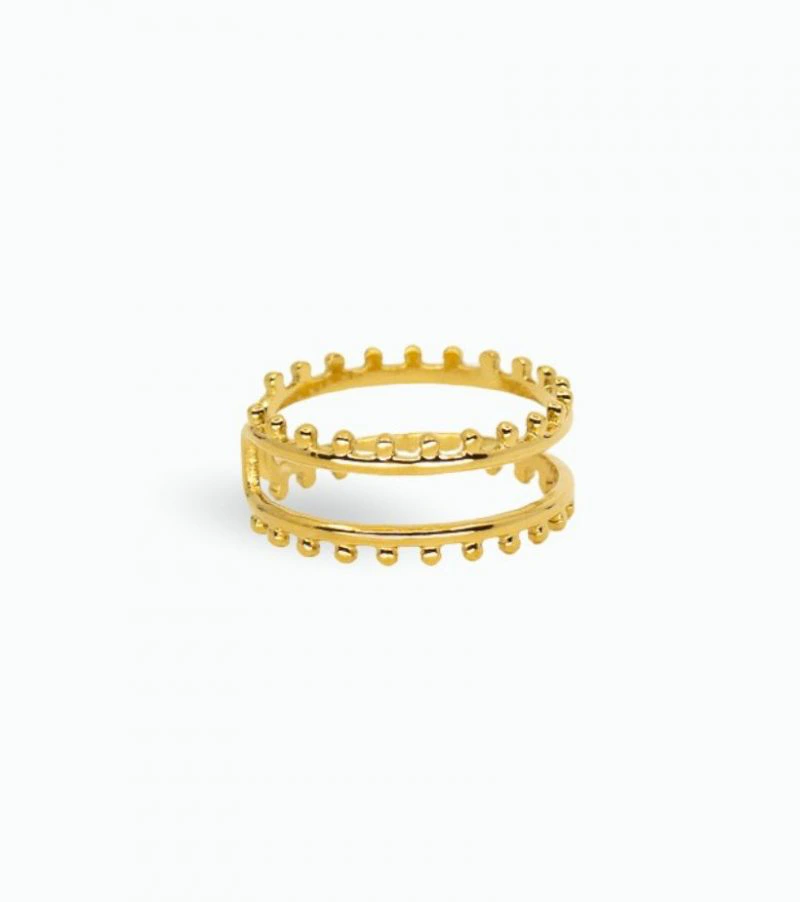 Bague en acier inoxydable doré à l’or fin design petite couronne.