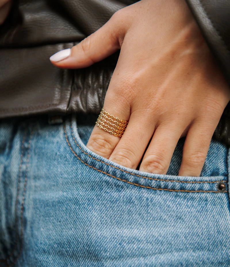 Bague multirang en acier inoxydable doré à l’or fin ✨