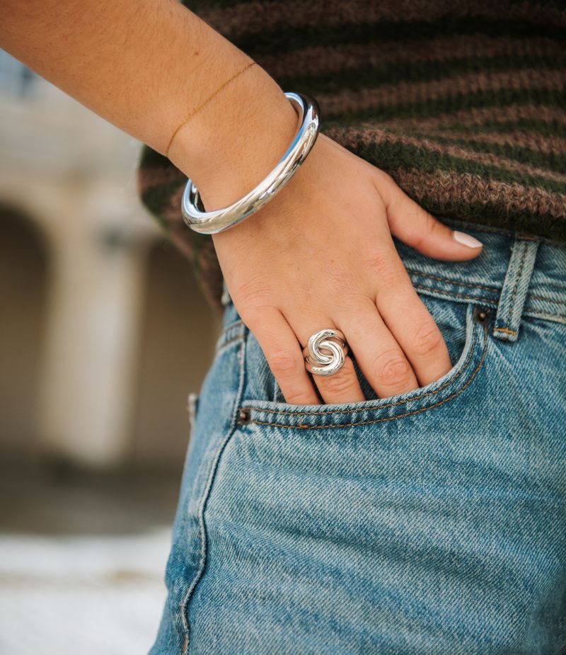 Bague épaisse plaquée or 18 carats 3 microns ou argent 925/000 rhodié certifié design nœud.