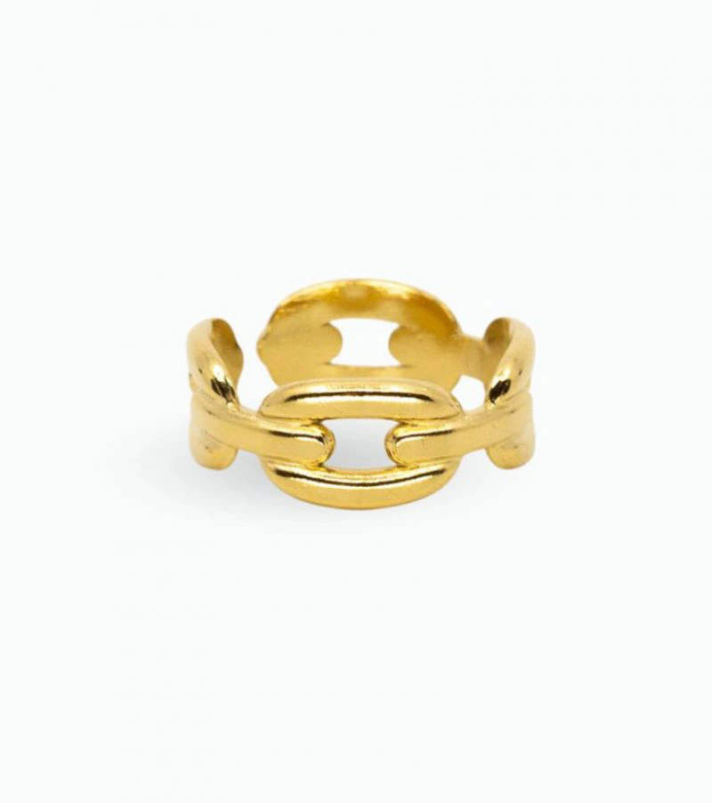 Bague chaîne en acier inoxydable doré à l’or fin ou acier.