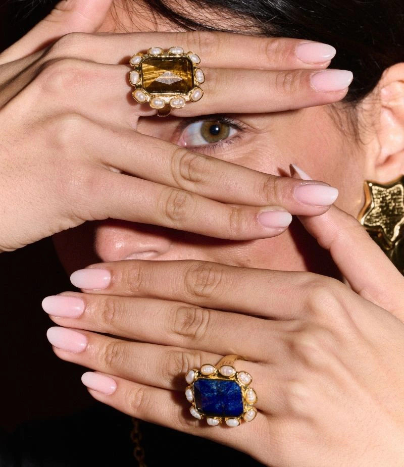 Bague en laiton recouverte d’un flash doré de qualité, offrant une jolie finition brillante. Elle est sertie au choix d’un lapis-lazuli ou d’un œil de tigre et entourée de perles d’eau douce pour un look élégant et intemporel. Le laiton utilisé est soigneusement sélectionné et protégé par un flash de doré plaqué.
