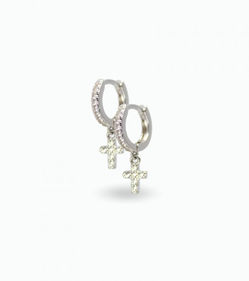 Nos mini créoles Angéline sont en plaqué or 18 carats, ou en argent 925. Elles sont bordées d’une petite croix sertie de strass.