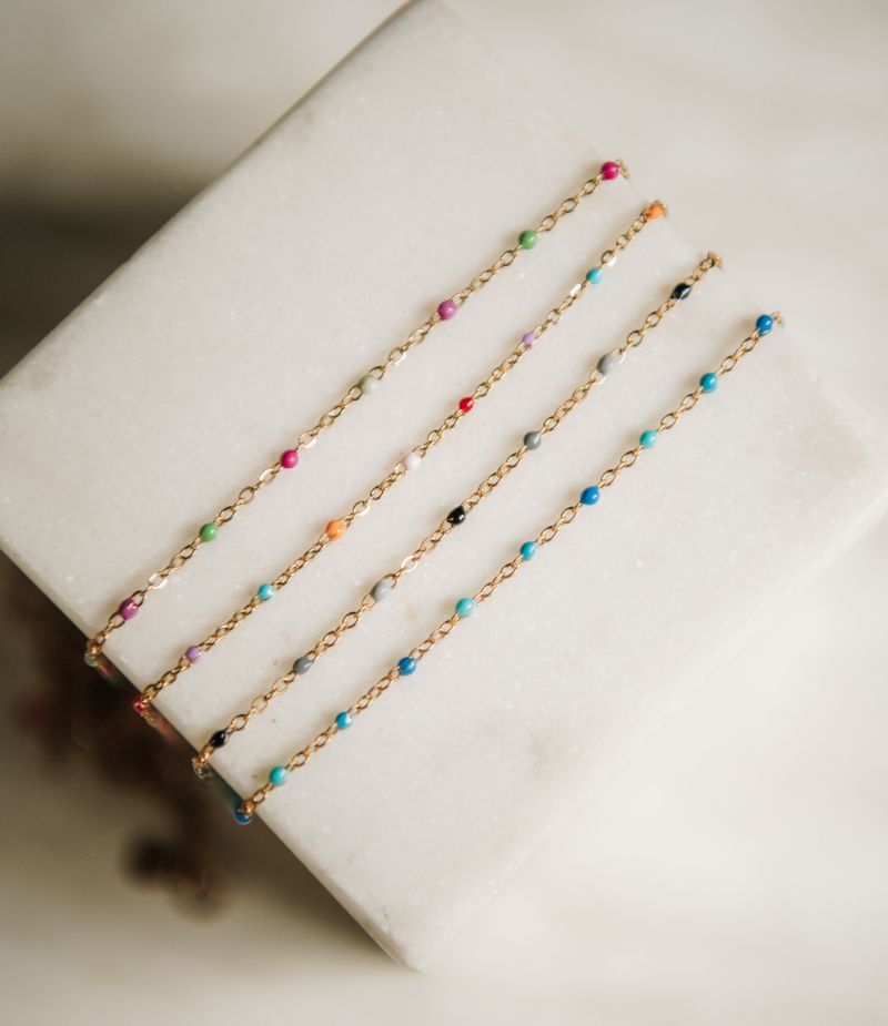 Notre collection bestseller ! À porter seul ou en accumulation, notre collier Angèle camaïeu arbore de fines perles émaillées sur une jolie chaîne fine ✨