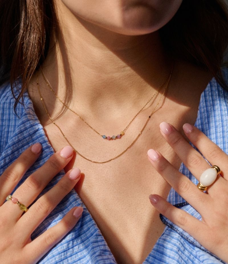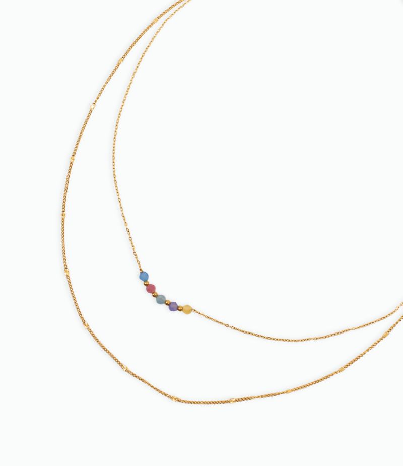 Collier multi rang en acier inoxydable avec perles colorées 🌈