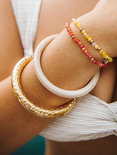 Jonc ouvert en acier inoxydable doré à l’or fin serti de cristaux colorés.