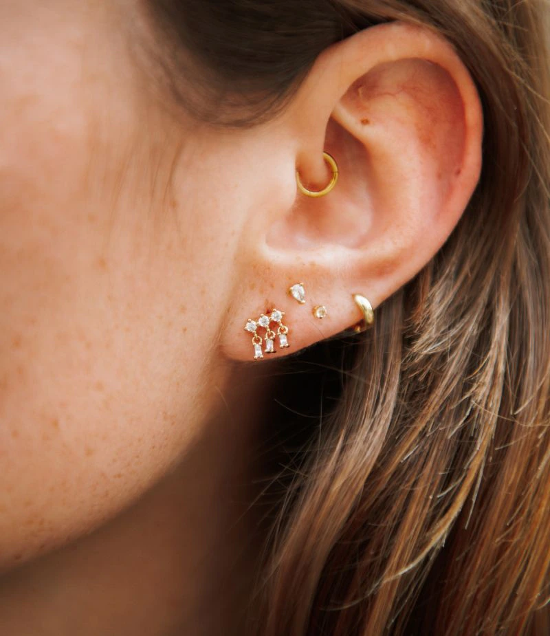 Boucles d’oreilles plaquées d’un or d’une valeur de 18 carats sur épaisseur de 3 microns. Les strass en oxydes de zirconium brillant autant que le diamant.