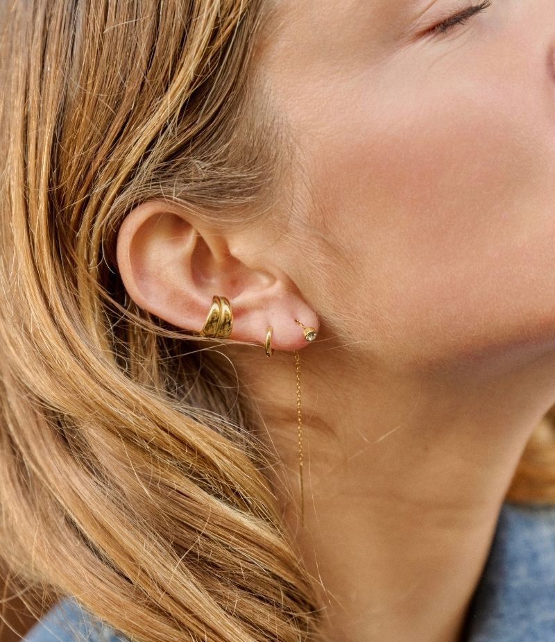 Boucles d’oreilles en acier inoxydable doré à l’or fin avec une finition brillante.