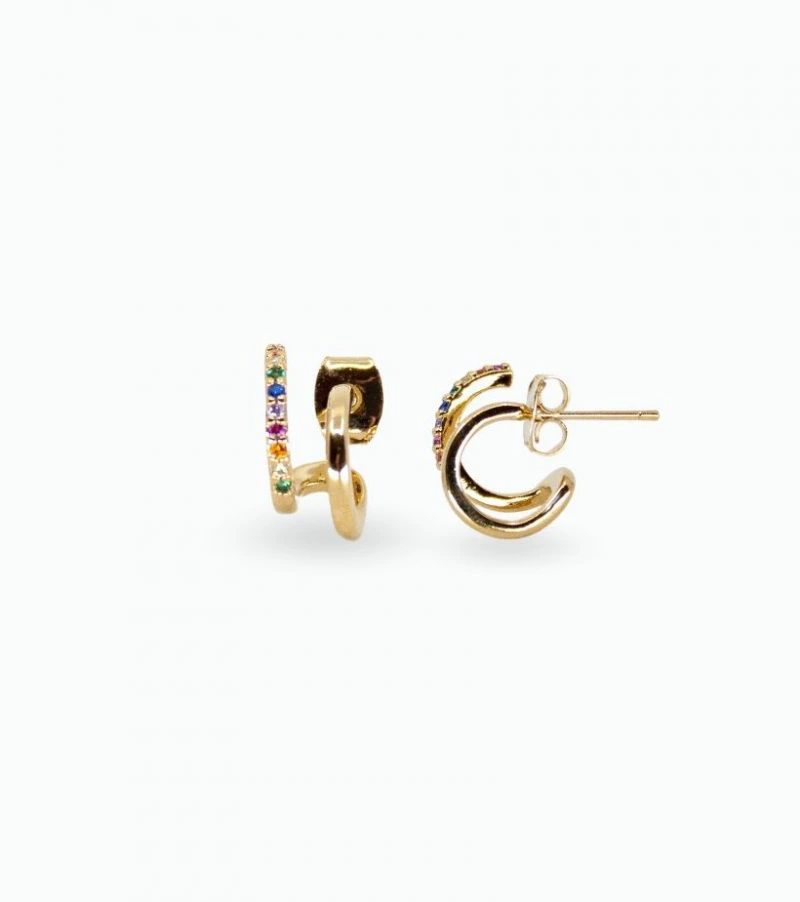 Boucles d’oreilles plaquées d’un or d’une valeur de 18 carats sur une épaisseur de 3 microns. Les strass d’oxyde de zirconium brillent autant que le diamant.