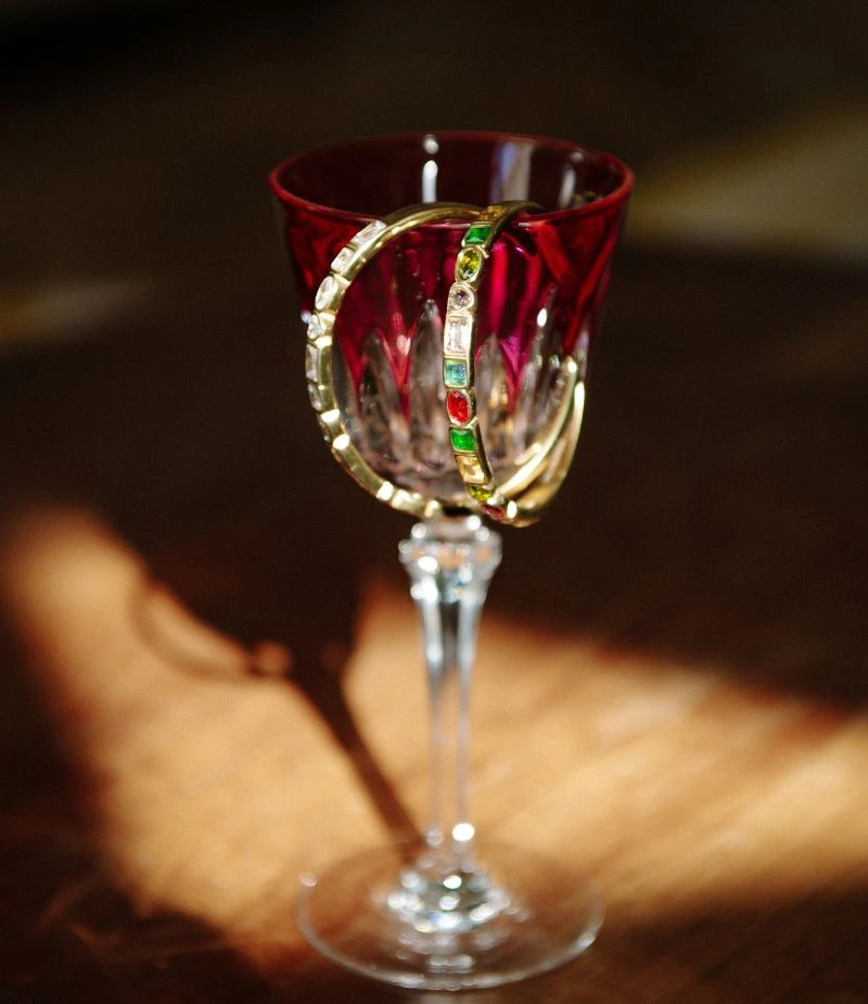 Notre jonc Kate est en acier inoxydable doré à l’or fin et est serti de cristaux colorés ✨
