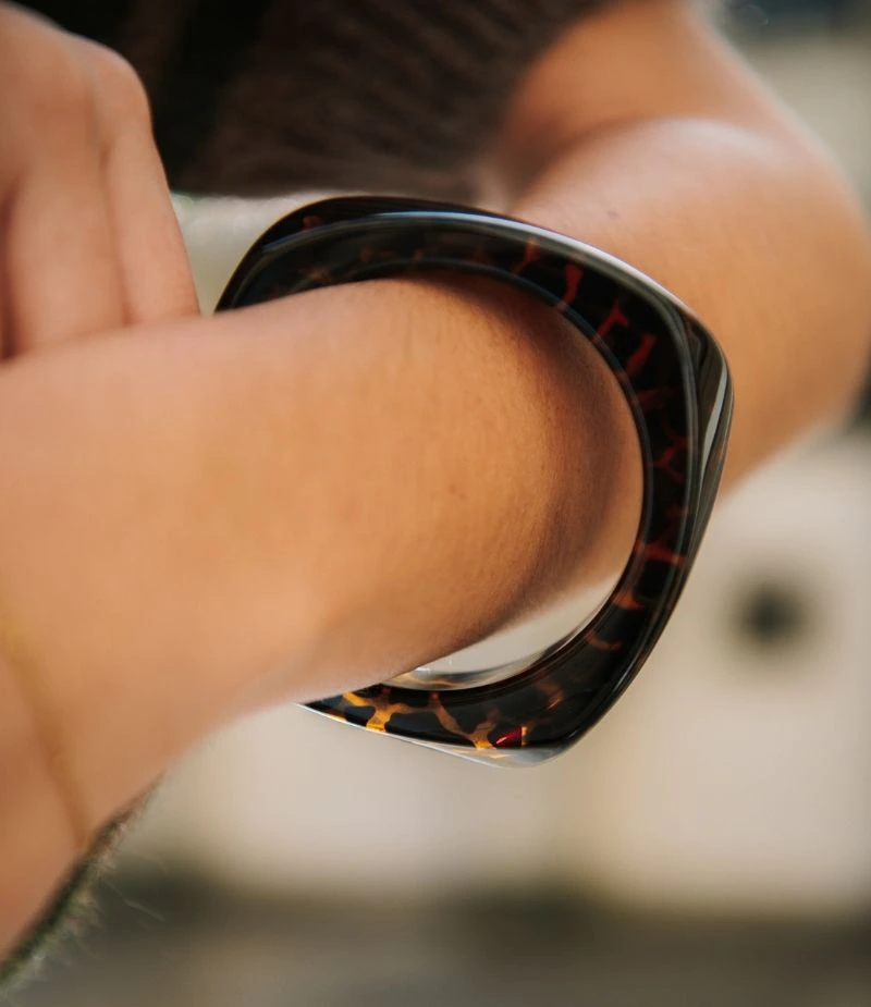 Bracelet jonc léopard, avec une finition lisse. Les bijoux en acétate sont légers et sont connus pour leur qualité supérieure au plastique, ce qui en font des bijoux hypoallergéniques et résistants à l’eau. Vos bracelets vont vous accompagner dans toutes vos aventures et baignades !