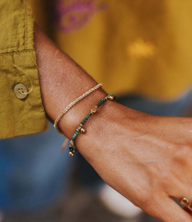 Notre bracelet Esmée est en acier inoxydable doré à l’or fin. Sa chaîne cordage est délicatement torsadée.