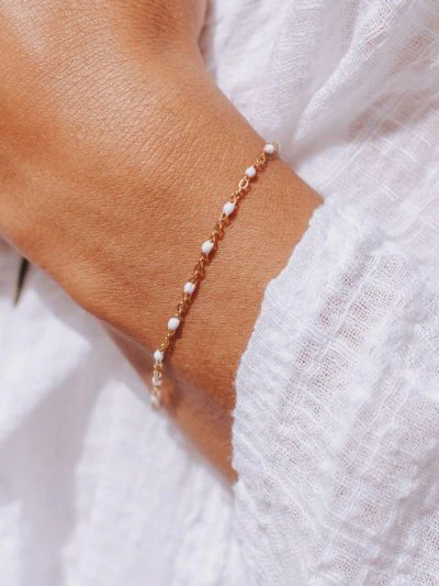 Notre collection bestseller ! À porter seul ou en accumulation, notre bracelet Angèle arbore de fines perles jaunes sur une jolie chaîne fine.