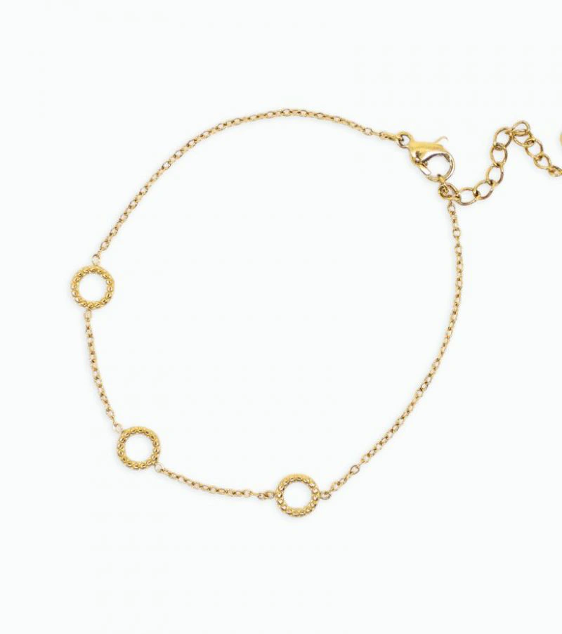 Bracelet en acier inoxydable doré à l’or fin bordé de pendentifs ajourés.
