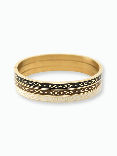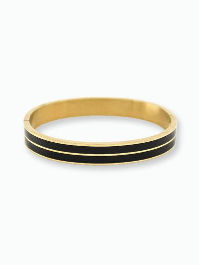 Jonc émaillé en acier inoxydable doré à l’or fin, avec une fermeture clipsée.