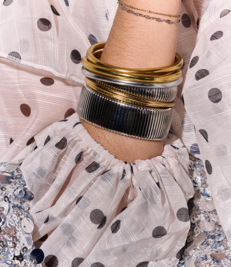 Notre bracelet jonc Maxine est fait en acier inoxydable. Idéal à porter en accumulation avec d’autres bijoux.