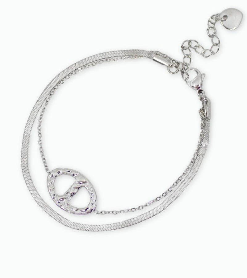 Notre bracelet Kris est en acier inoxydable. Sa double-chaîne est bordée de pendentifs chaine d’ancre.