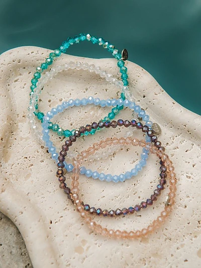 Semainier en acier inoxydable doré à l’or fin 7 bracelets fin et perles lettres avec inscription “chance”.