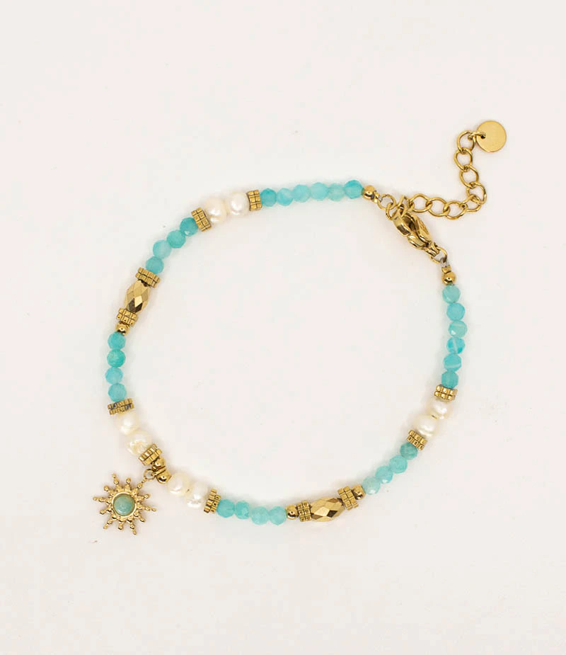 Bracelet bohème à pendentif étoile du nord en acier inoxydable doré à l’or fin bordé de pierres d’Amazonite.