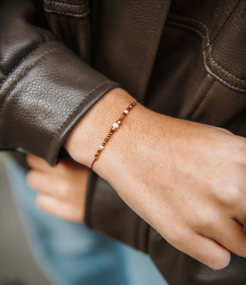 Le cordon de notre bracelet Lisa est bordé de petites perles colorées et les détails sont en acier inoxydable doré à l’or fin ✨