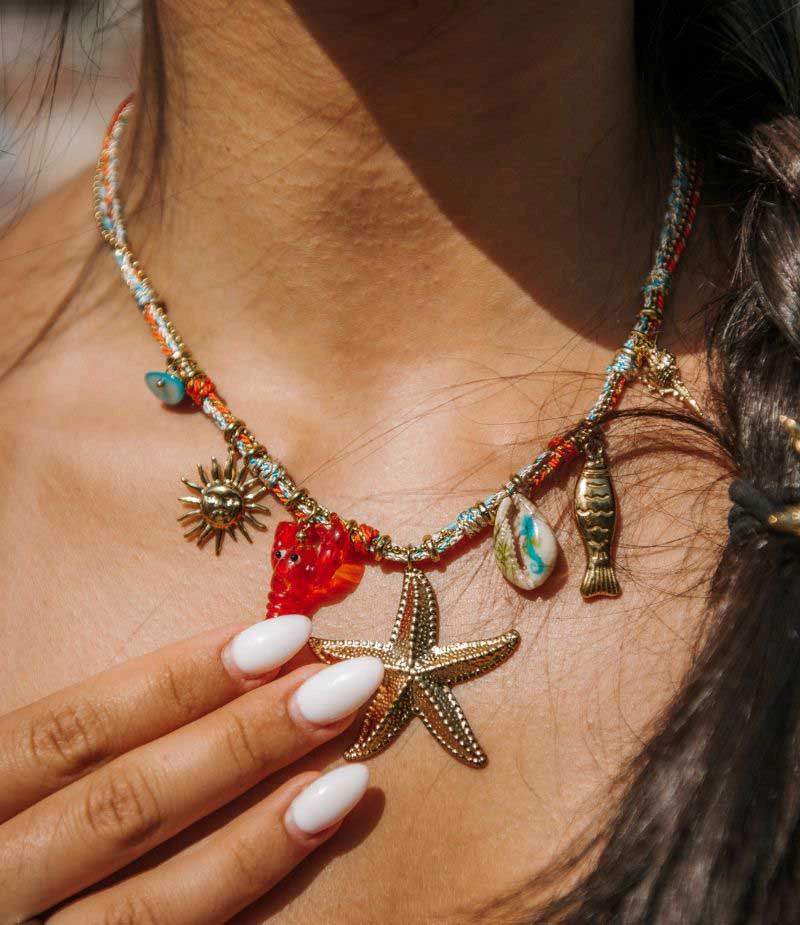 La chaine colorée de notre collier Briana est bordée de charms en acier inoxydable 🦞