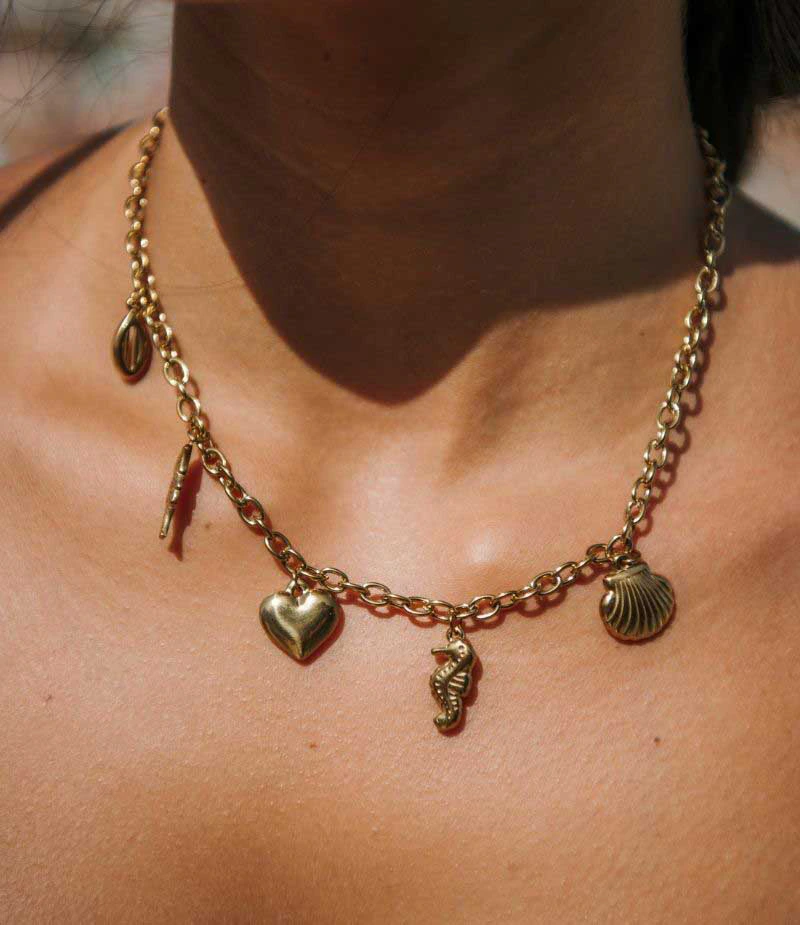 Notre collier Rachelle en acier inoxydable est bordé de charms ✨