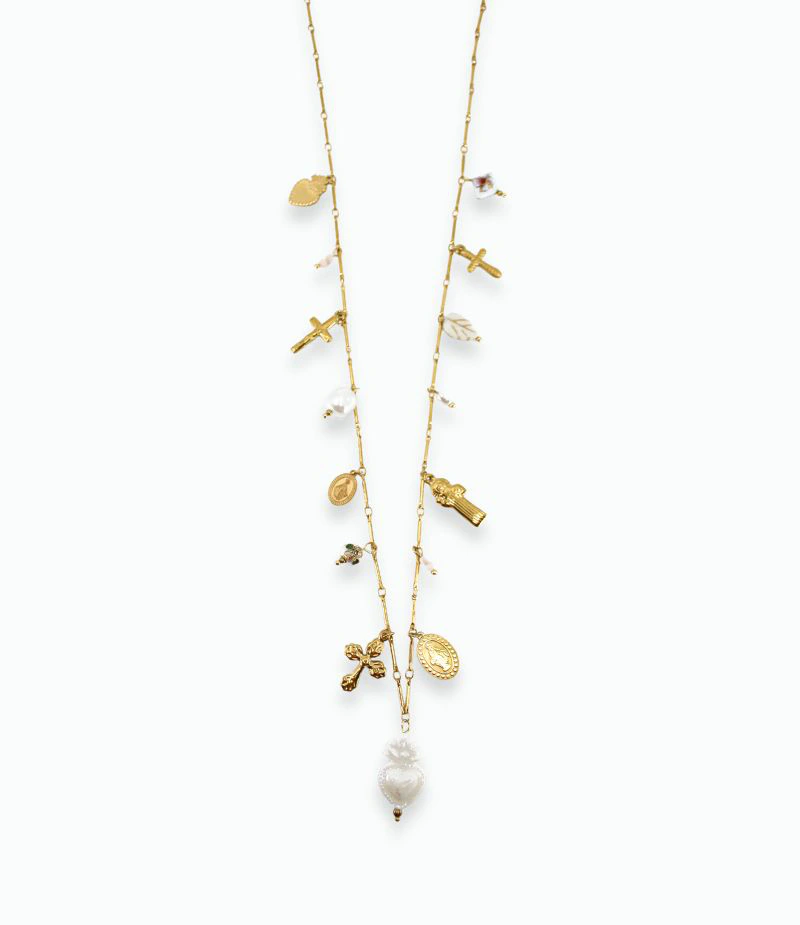 Notre sautoir Octavia en acier inoxydable est bordé de breloques mobiles 🤍