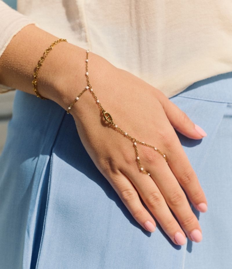 Chaîne de main en acier inoxydable doré à l’or fin élégante pour sublimer vos gestes au quotidien.