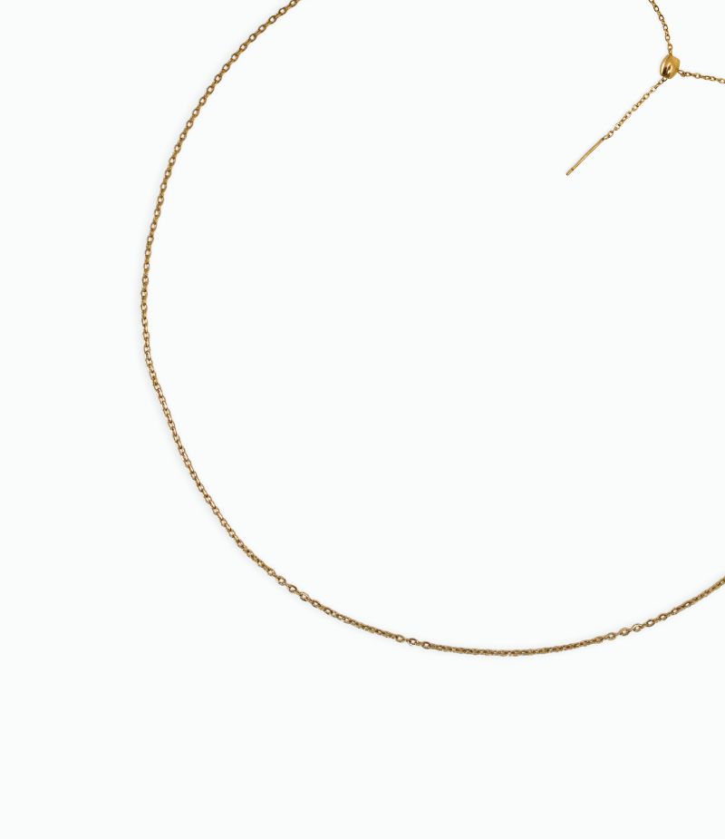 Collier acier inoxydable doré à l’or fin avec une jolie finition brillante. Sa taille est ajustable à n’importe quel endroit du collier grâce au bouton coulissant.