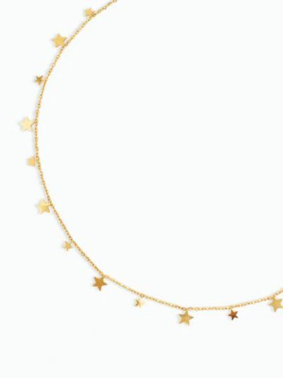 Notre collier Michèle est en acier inoxydable doré à l’or fin, ou en acier inoxydable simple. Sa chaîne fine et délicate est bordée de petites pampilles pour un style bohème chic !