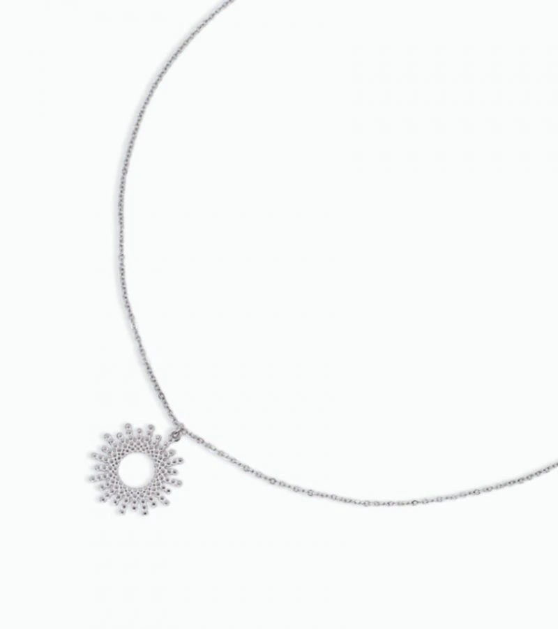 Collier fin et délicat en acier inoxydable doré à l’or fin ou acier avec pendentif soleil.