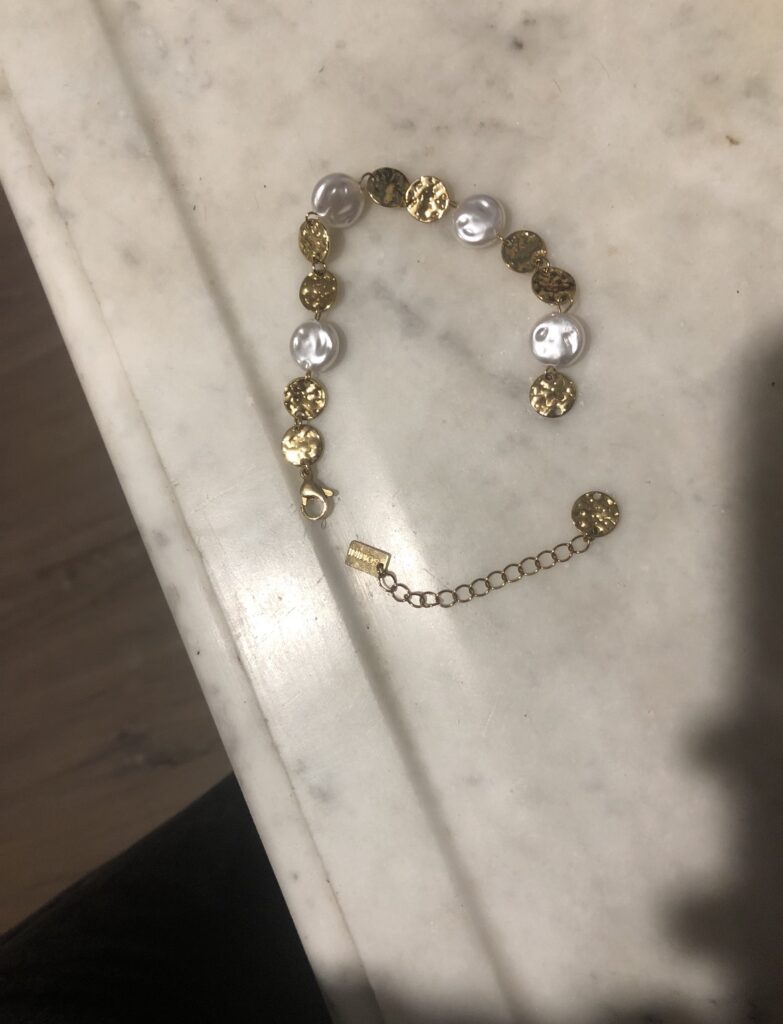 Bracelet en acier inoxydable avec pastilles dorées et nacrées 🦪