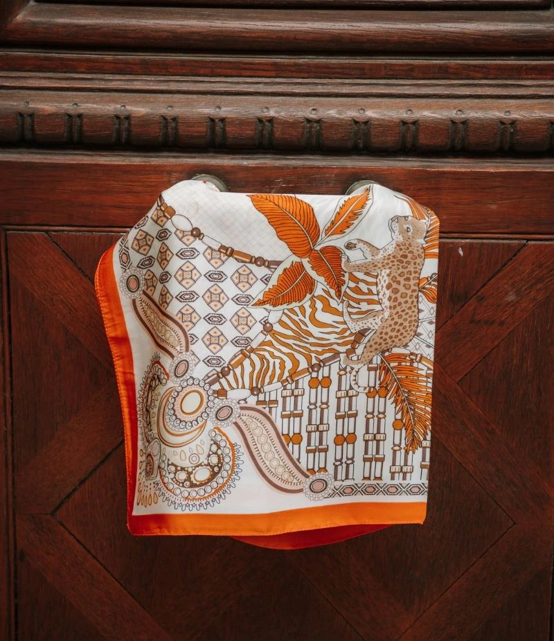 Notre foulard imprimé apportera une touche de couleur à vos looks. En tour de cou, aux poignets, dans les cheveux ou accroché à votre sac, ce petit accessoire est indispensable !