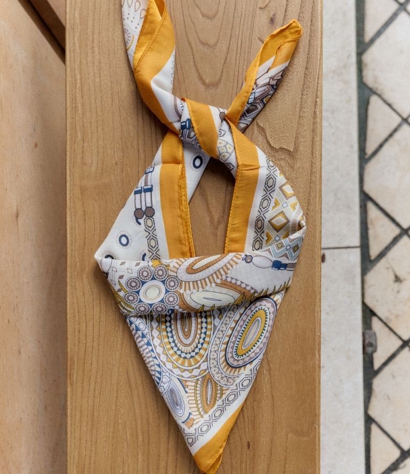 Notre foulard à imprimé apportera une touche de couleur à vos looks. En tour de cou, aux poignets, dans les cheveux ou accroché à votre sac, ce petit accessoire est indispensable !