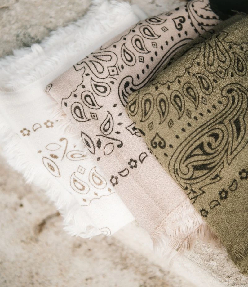 Foulard à motif bandana. Sa grande taille carré est idéale pour porter ce foulard de plusieurs façons différentes selon vos envies. Retrouvez tous ses coloris sur notre site !
