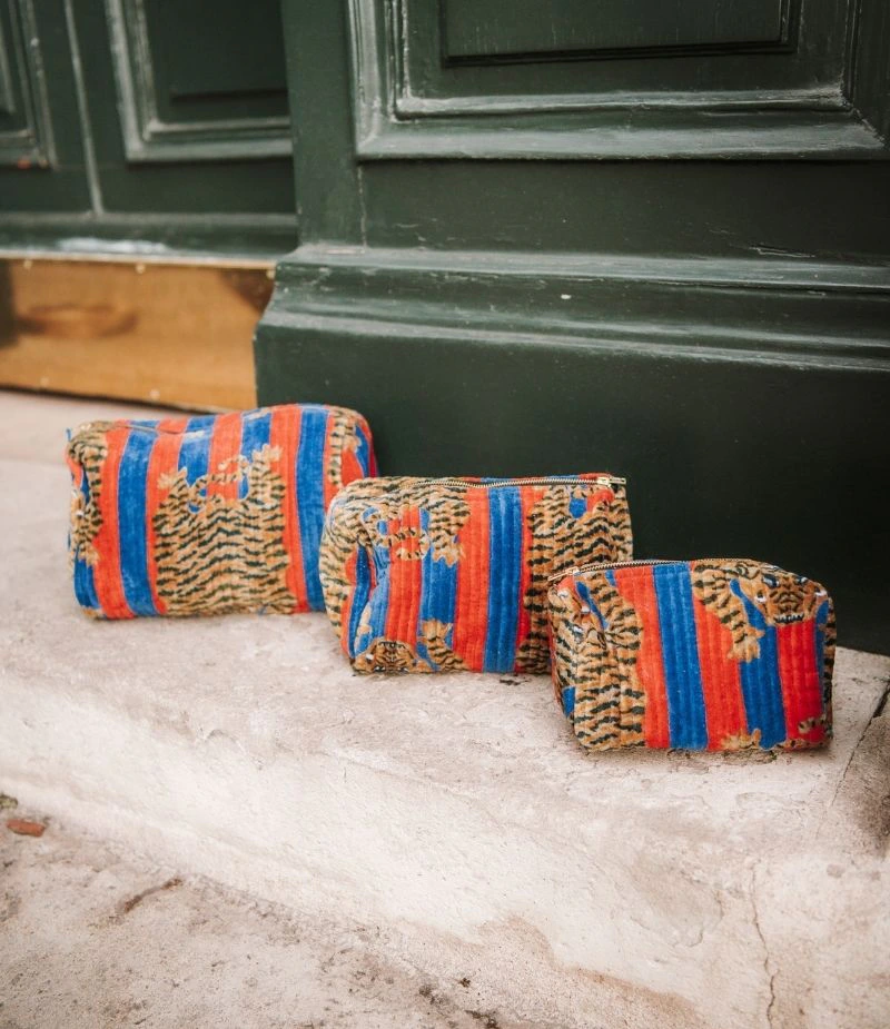 Pochette en tissu rouge ou bleu imprimé tigre avec fermeture éclair. Rangez vos affaires dans vos sacs à mains ou ailleurs 🐯