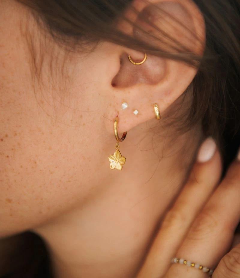 Mini créoles en acier inoxydable doré à l’or fin serties d’un pendentif fleur 🌸