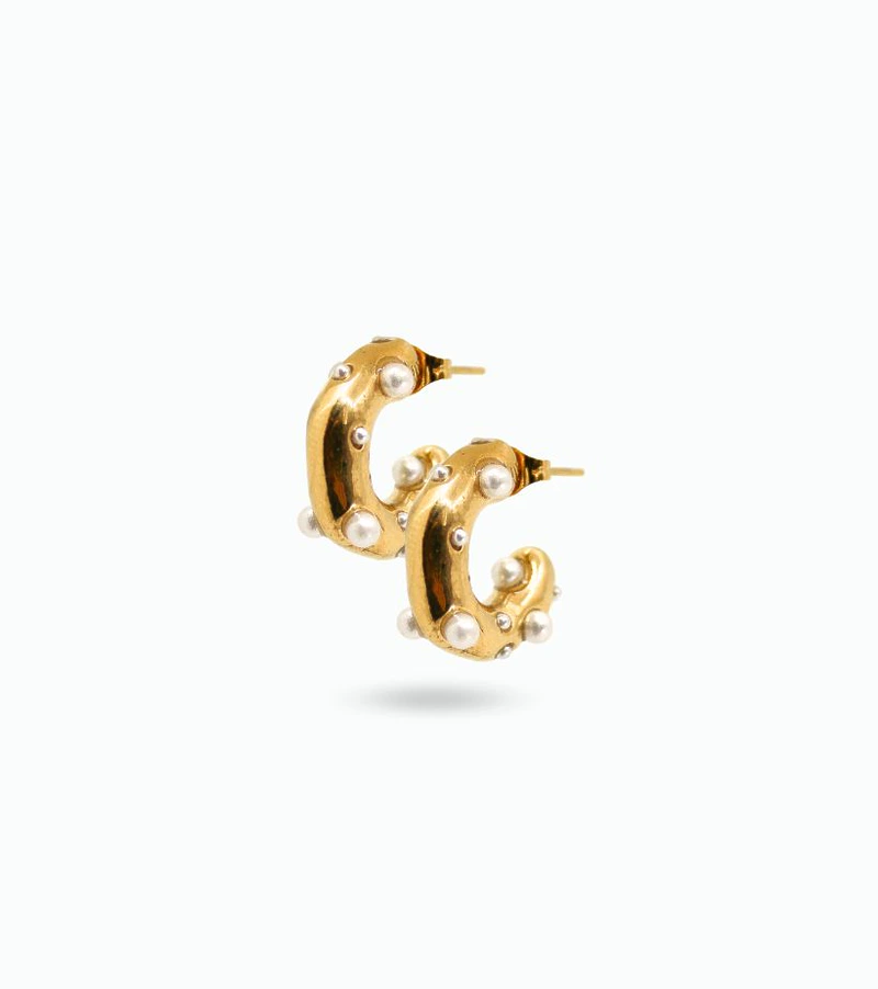 Petits anneaux en acier inoxydable doré à l’or fin bordés de perles nacrées 🦪