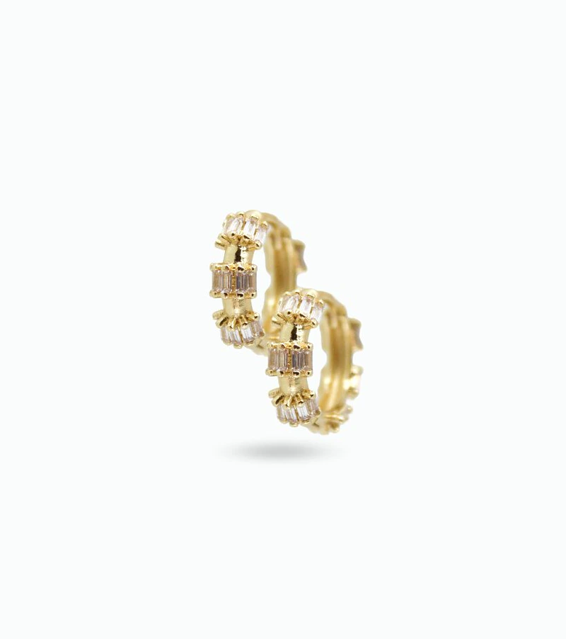 Mini boucles en acier inoxydable doré à l’or fin, avec une jolie finition brillante. Les strass d’oxydes de zirconium brillent autant que le diamant.