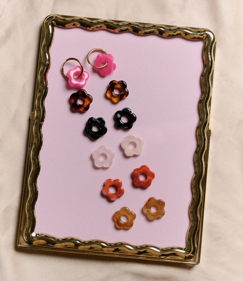 Mini créoles en acier inoxydable doré à l’or fin, décorées de fleurs colorées🌼