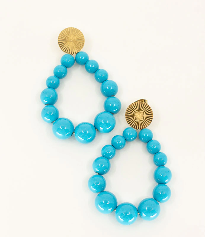 Boucles pendantes en grosses perles colorées avec une puce striée en acier inoxydable doré à l’or fin.