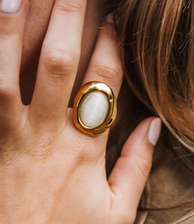 Notre bague Edesée est en acier inoxydable doré à l’or fin, adoptez la trend des bagues statement 😍