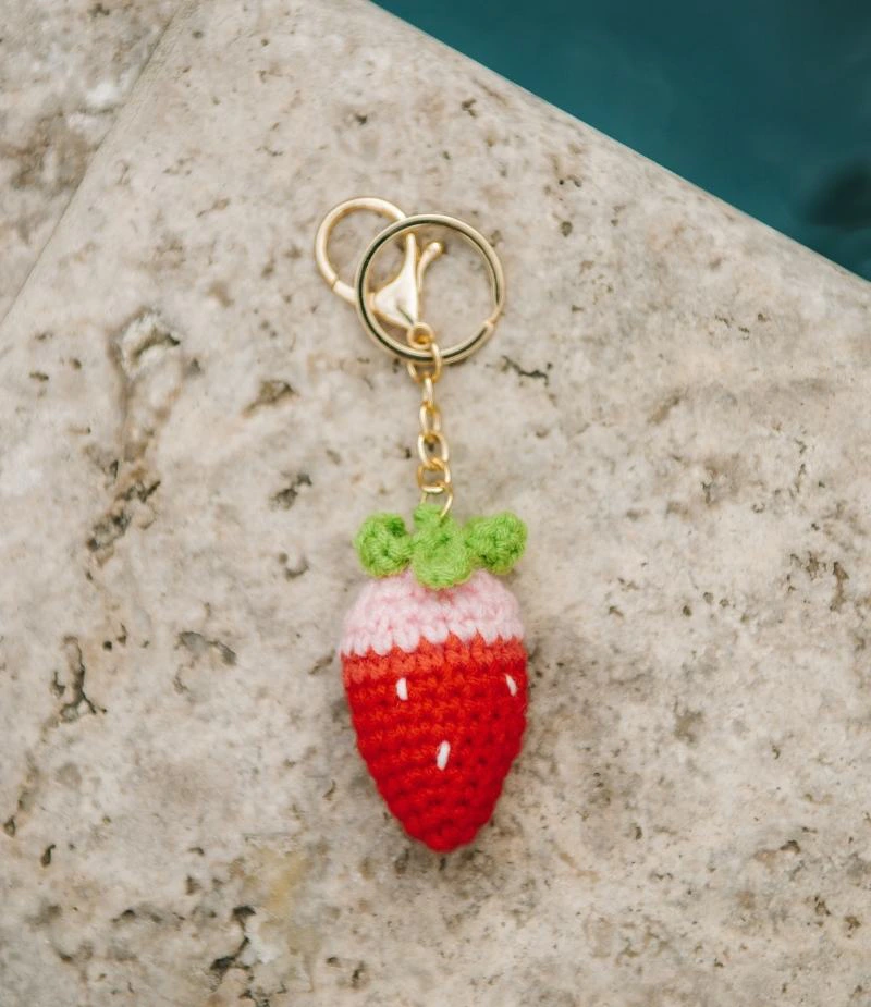 Porte-clés en crochet avec un pendentif fraise, à accrocher à vos clés ou à votre sac 🍓