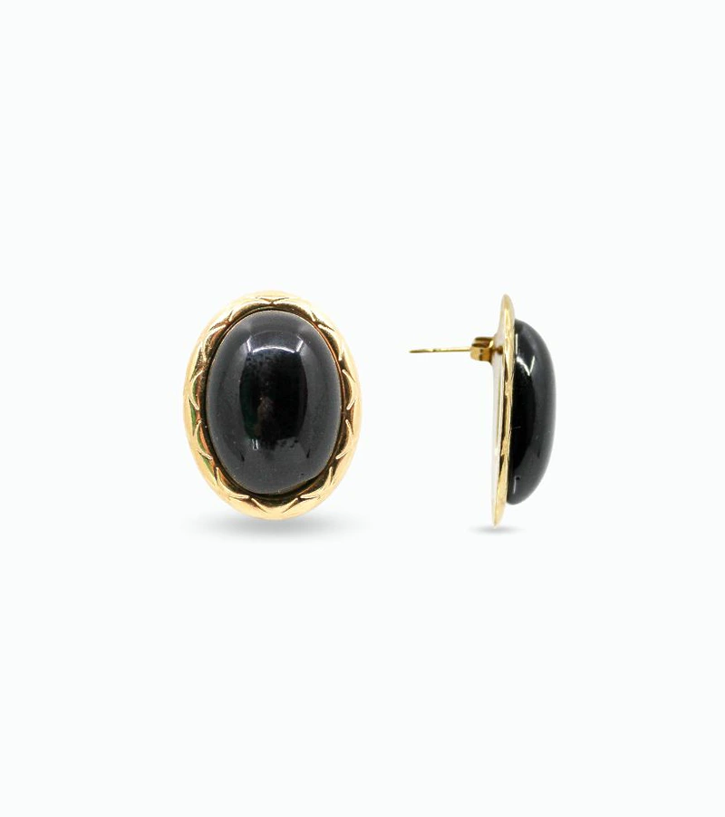 Boucles en acier inoxydable doré à l’or fin serties d’une grosse perle noire 🖤