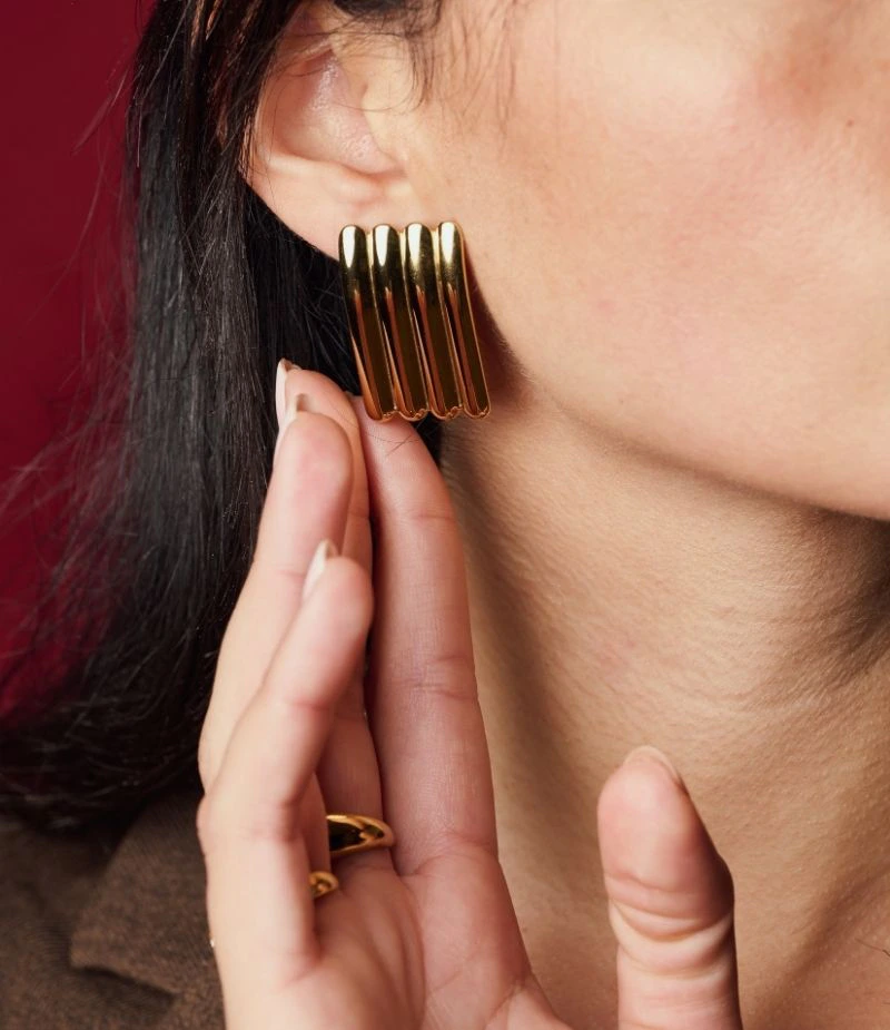 Boucles d’oreilles géométriques rainurées en acier inoxydable ✨