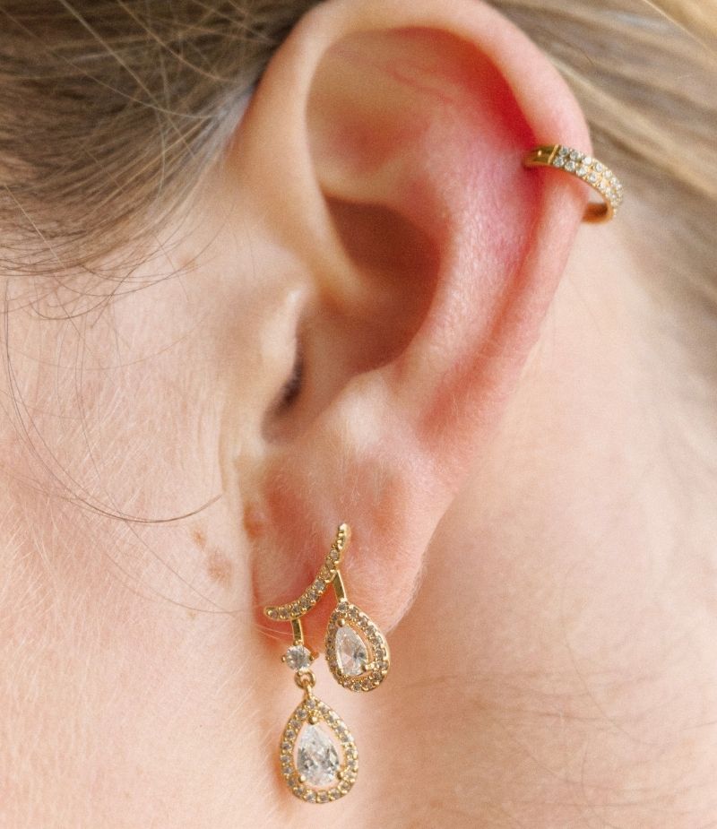 Piercing en acier inoxydable recouvert d’une couche d’or fin. Les strass en oxydes de zirconium brillent autant que le diamant !