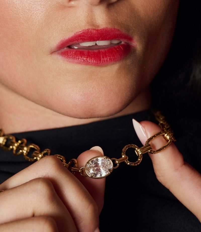 Notre collier Wendy est en acier inoxydable. Sa chaine épaisse est sertie d’un pendentif strass 🔗